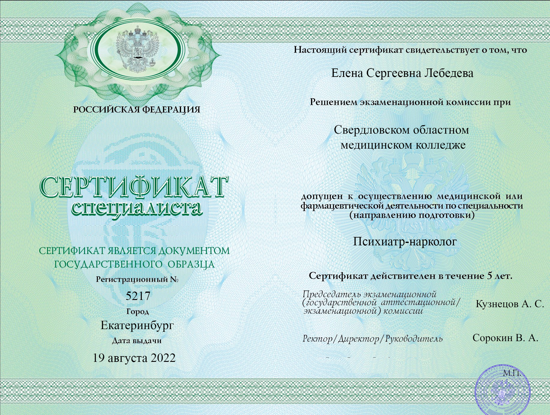 Елена Сергеевна Лебедева врач нарколог клиники доктора Стукаловой в Боброве